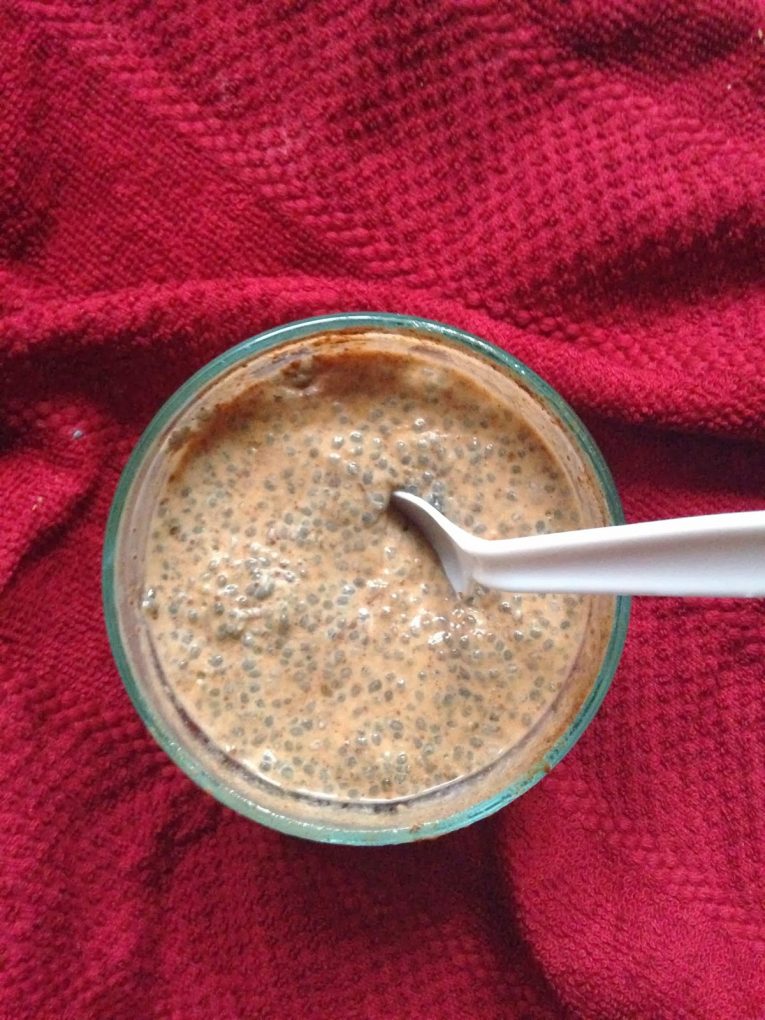 Afternoon snacking included pumpkin chia pudding [2 tablespoons chia seeds, 3/4 cup almond milk, 1/4 cup pumpkin puree, and vanilla extract and cinnamon]