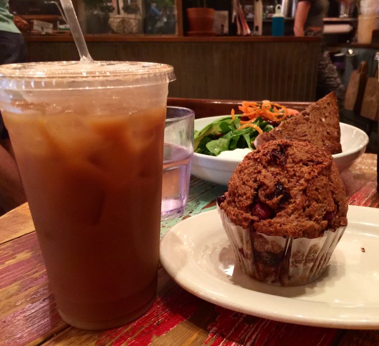 We biked home and I was asleep by midnight since I was meeting one of my nursing school friend’s, Sarah, for breakfast. She’s training for the NYC marathon so had an 11 mile long run. I was not waking up to join her at 7am, so I woke up at 8 and jogged three miles down and along the Highline to Grey Dog where we ate breakfast. I had just woken up so wanted something sweet and carby. My fav cranberry orange oatmeal muffin with a large ice coffee hit the spot. The muffin is dense and somehow keeps me full for like hours.