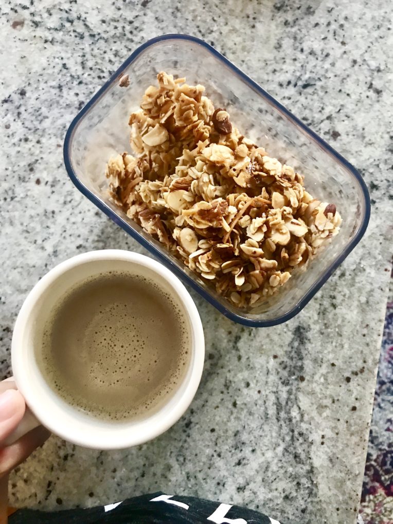 In the morning, I snack on handfuls of this stuff along with a cup (or two) of coffee with my current favorite df creamer before breakfast since I wake up early around 5:30 or 6 to work and don’t eat breakfast until 7:3o or 8ish most days.
